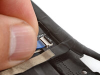 • Use your fingers to grab the orange tab on the display cable, located near the right hinge.