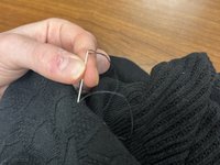 • Once again, face the needle towards the inside of the sweater then pull the needle through the site of snag.