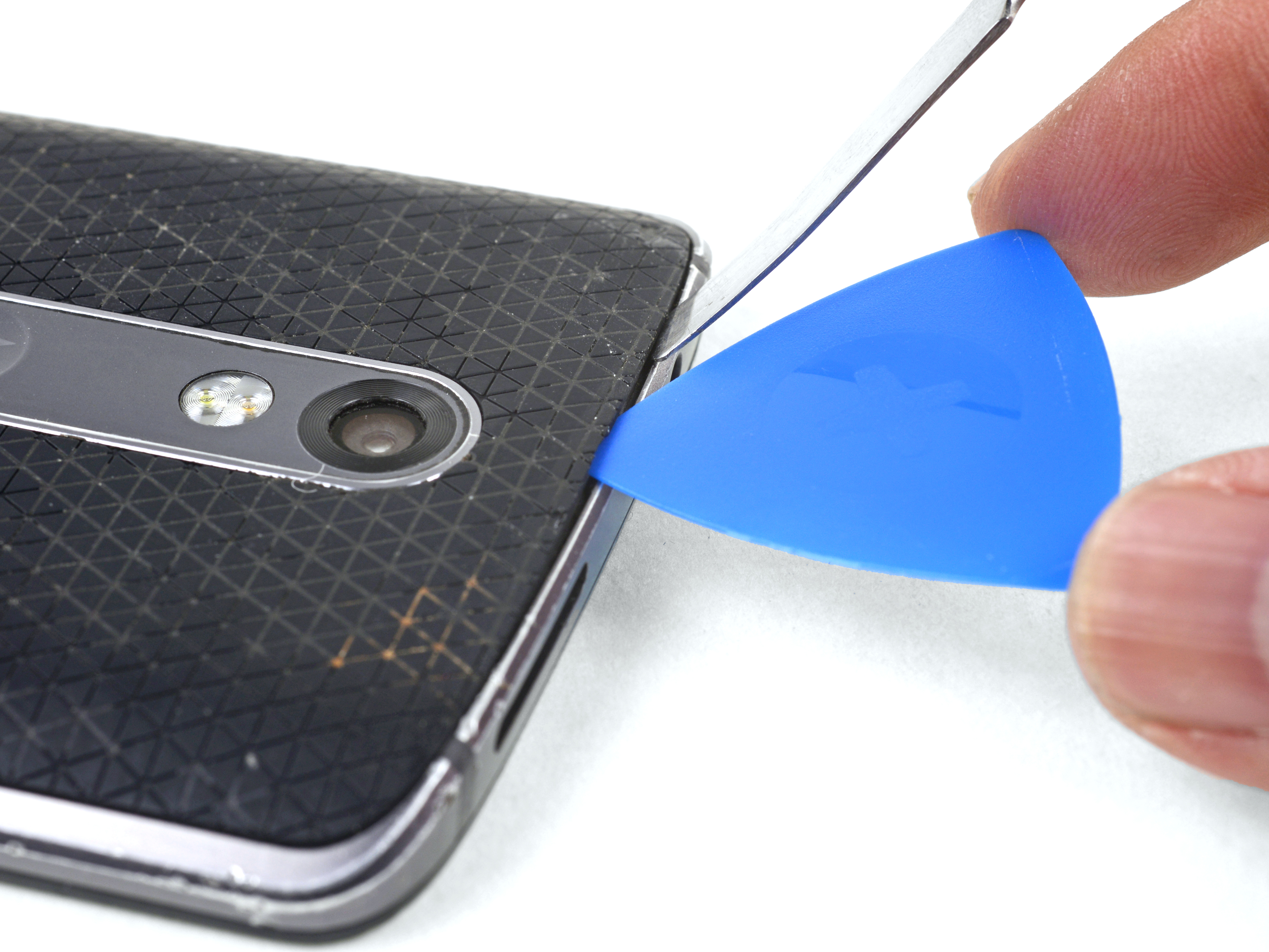 • Angle an opening pick and firmly press so that it slips under the back cover.