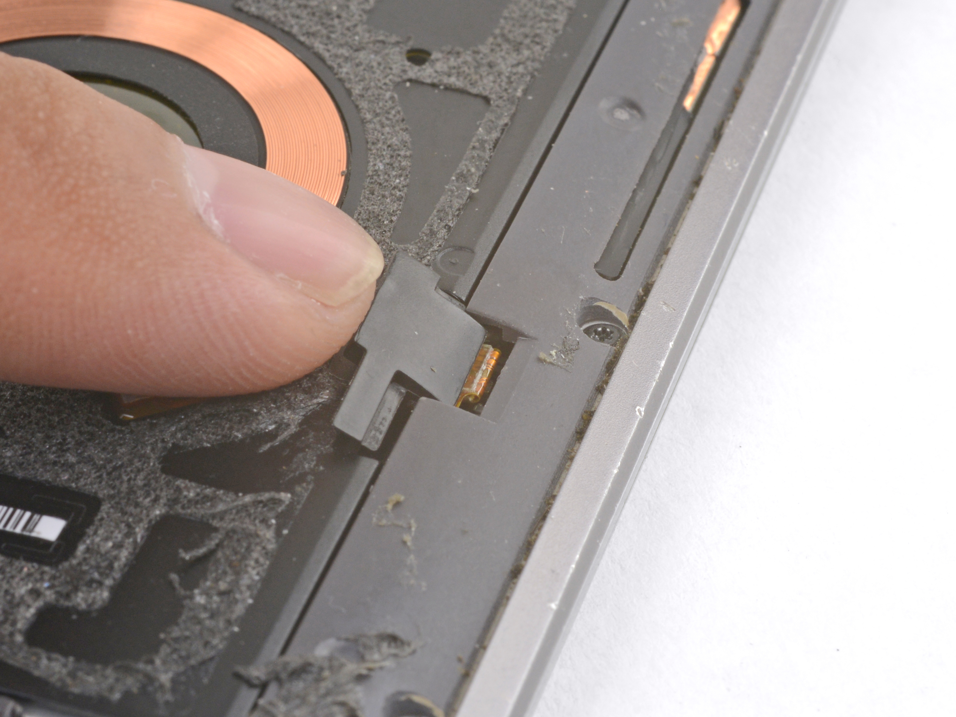 • Use the point of a spudger to pry up and remove the coil connector rubber cover.