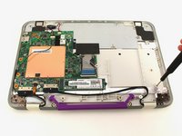 • There is a mild adhesive holding down the battery. Take care not to puncture or excessively bend the battery while freeing it from the adhesive.