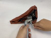 • Hold the staple gun directly against the leather and flush with the surface of the bike seat. Press down firmly, and staple the leather in place.