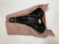 • Place your bike seat on top of the new leather material and measure out enough leather to generously cover the entire top and sides of the bike seat.