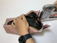 • Keep all body parts clear of the heavy-duty staple gun and hold it firmly against the leather material.