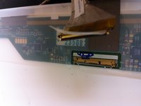 • Before trying to remove video cable from back of LCD. First gently remove cable from adhesive holding it down to board. Then remove tape from top of cable holding connector in place. Be very gentle at these points.