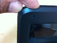 • First remove the stickers covers the screws in the 4 corners of LCD case. Stickers are very thin and using utility knife is easiest way to remove without damaging them. After removing stickers unscrew top 2 screws then proceed to Step 2 before trying to remove bottom 2 screws.